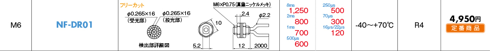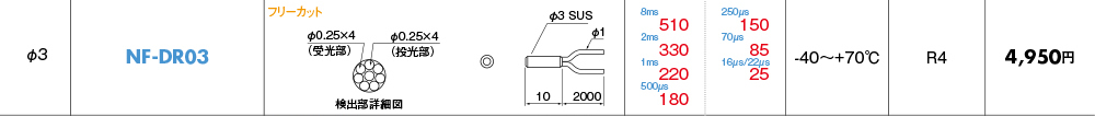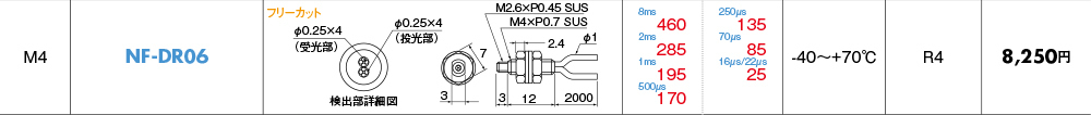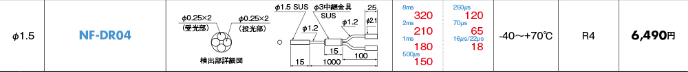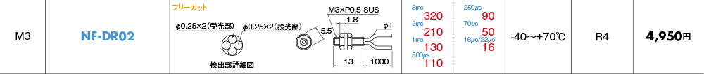 ●反射型ファイバユニットの検出距離は、500×500mm白色紙での値です。