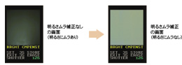 撮影する場所によって照明のムラが影響して、うまく色が検出できないことがあります。そんな時に、明るさ補正機能を使うと有効です。光沢のない均一な明るい色(白い紙など)を撮影してその明るさを読み出し、その値を登録して撮影画面の補正を行ないます。
