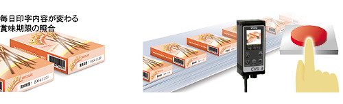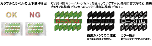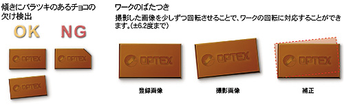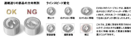CMOSイメージセンサは、動くワークを撮影すると変形して映る欠点がありますが、CVS3-Rでは世界で初めてこの変形を補正!ワークの速度変化で誤検出しにくくなりました。