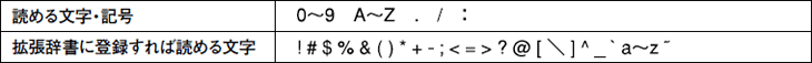 内蔵のOCR(Optical Character Reader:光学式文字読取装置)で、アルファベット・数字・記号を読み取ることが可能なセンサです(漢字・ひらがな・カタカナ等は読めません)。