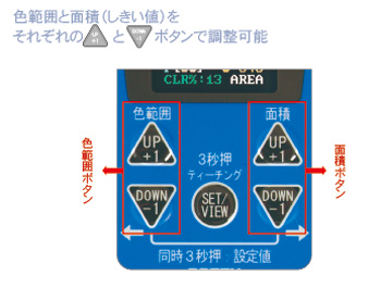 しきい値である面積の値をアップボタンとダウンボタンで簡単に調整が可