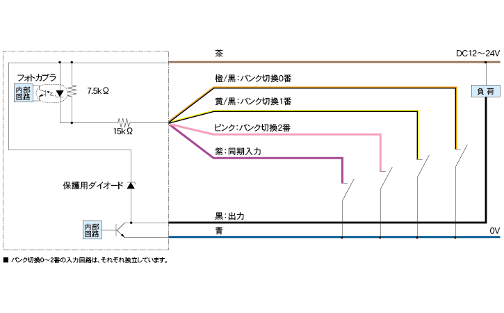 OFF:開放、または茶線と接続します。 O N:青線と接続します。