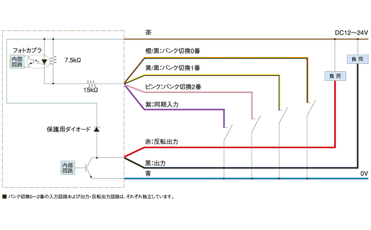 OFF:開放、または茶線と接続します。 O N:青線と接続します。