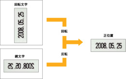 MVS-OCR-Rでは新たに文字の方向も設定できるようになりました。設定値“撮影方向”で品種ごとに文字の方向を各バンクに登録すれば、カメラの取付方向を変えることなく、バンク切換のみで撮影が可能です。また、透明フィルムを裏から撮影する場合に発生する鏡文字にも対応しています。