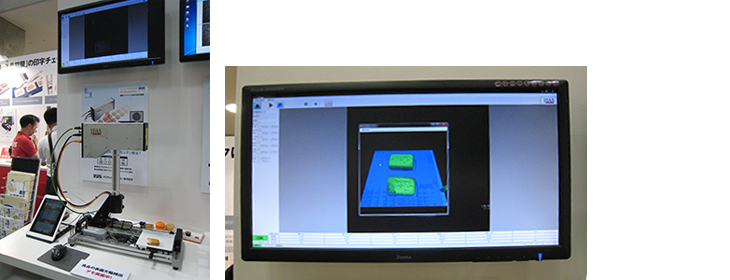 当社は、FOOMA JAPAN2014において「印字検査のオプテックス・エフエー」をテーマに、賞味・消費期限の印字をチェックする印字検査機を出展しました。FOOMA会場では印字検査を目視で行っていらっしゃる企業様も多く、印字検査機導入の障壁となっている「高額そう」「設定や操作が難しそう」といったイメージを覆す、低価格・かんたん操作の印字検査機をご紹介しました。また、食品の割れ・欠けなどの外観欠陥を検査する3D画像検査装置も出展しました。