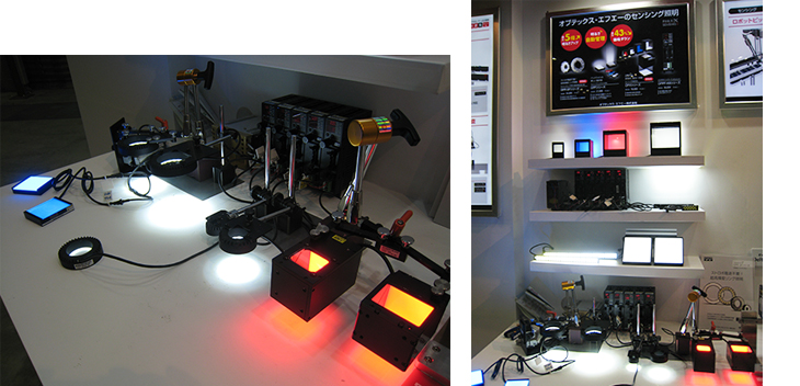 広範囲・高輝度照射が可能でロボットビジョンに適した画像処理用LED照明、ロボットの位置決めなど搭載用途に適したコンパクトレーザ変位センサを展示しました。