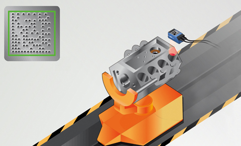 エンジンブロックに打たれたDPMコードを2次元コードリーダLECTOR620で読み取ります。