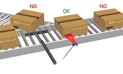 カートンのセットは人が行いますが、製品名が似ていると誤ったカートンをセットしてしまうことがあります。CLV600でバーコードの読取確認を行えば、誤ったカートンをセットしてしまっても排出装置で排出することが可能。カートンとその中身である製品が違うといったトラブルを事前に回避することが可能です。