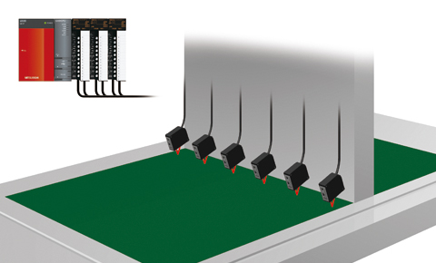 CD33は小型・軽量設計なので可動する露光ヘッドに取り付けても負荷が小さく、ヘッドの動きを妨げないアライメントが可能です。また変位センサコントロールユニットUQ1を使用すれば三菱電機製MELSEC-Qシリーズとアンプを介さずに接続可能。ラダーやPLCの知識がなくても、専用ソフトにより変位センサの設定を短時間で行うことが可能です。