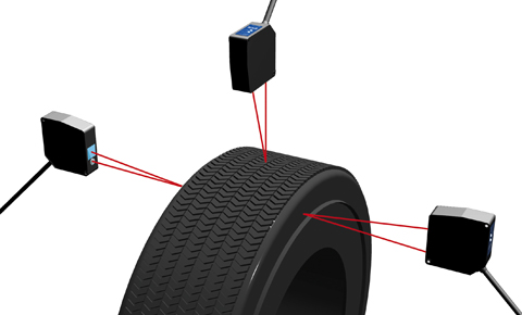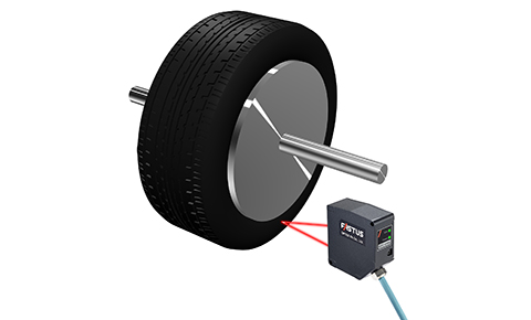 レーザ変位センサCDXシリーズで、タイヤのサイドウォール部分の外形検査を行います。