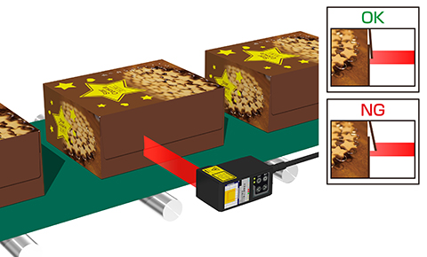 化粧箱のフタの浮き(接着不良)を形状測定センサLS-100で検査します。