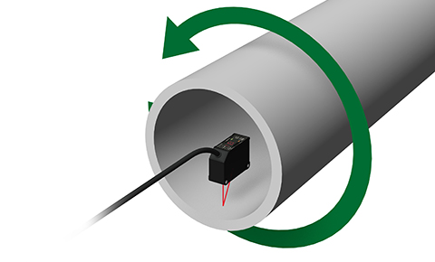 大きいサイズのセンサではパイプの中に入れることはできませんが、クラス最小サイズのCD22なら内径50mm以上のパイプの検査が可能。センサの小型化により、外径だけでなく内径の検査も実現しています。