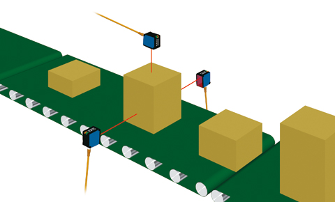 DT35なら非接触で高速測定が可能。カートンのサイズを高精度に測定し、仕分けることが可能です。