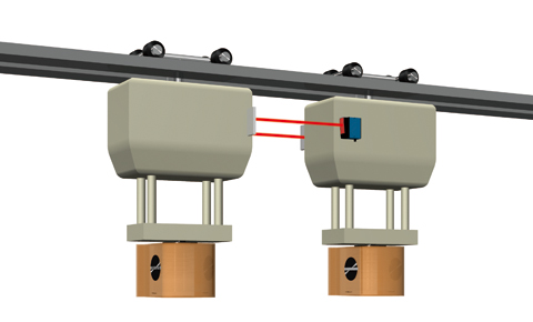 リフレクタ型レーザ距離センサDT35でOHT(天井走行式無人搬送車)の接近制御を行います。
