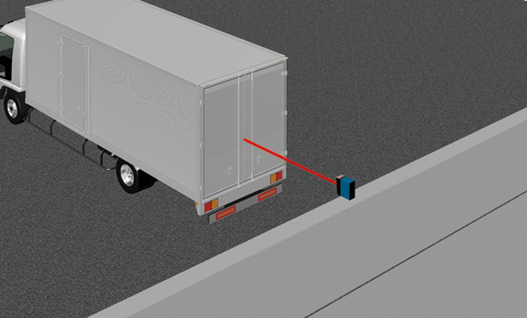 反射型レーザ距離センサDT35で大型トレーラーの駐車位置検出します。
