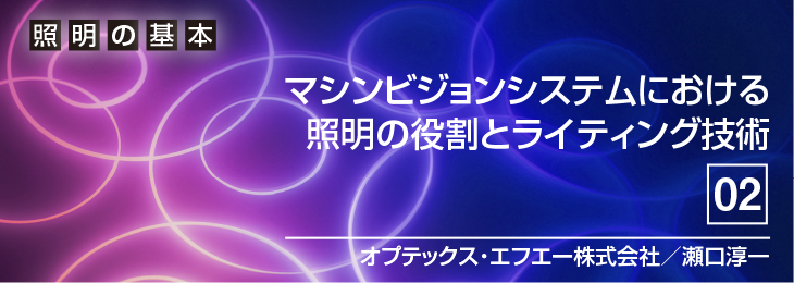 この色の識別は、物体の分光反射率の差で光の明暗を判別することになる。分光反射率とは、どの波長をどれだけ反射するかという特性である。この分光反射率の違いを、画像の濃淡として認識する方法は、カメラで特定の波長のみ受光するか、照明で特定の波長の光を照射するかのいずれかとなる。マシンビジョンにもカラーカメラが一般化してきており、白色照明を使ってイメージセンサ上のRGB画素がそれぞれの濃淡を認識して色を識別することが多くなってきた。モノクロカメラの場合は、照明側で特定の波長を照射することで、その照明の波長に対する分光反射率の違いを濃淡として特徴を最大化する。いずれにしても単色と白色の光源いずれも選択できるLED照明が有効となる。