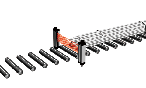 先端が不揃いの棒鋼の束をエリアセンサMLG-2 Proシリーズで検出します。