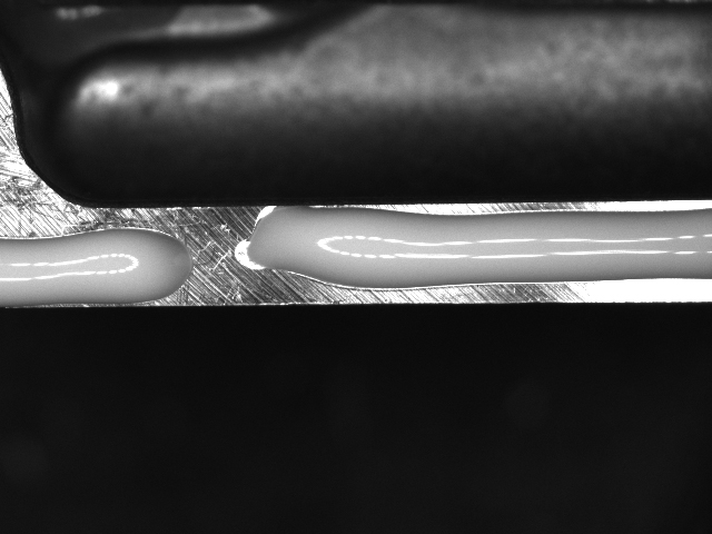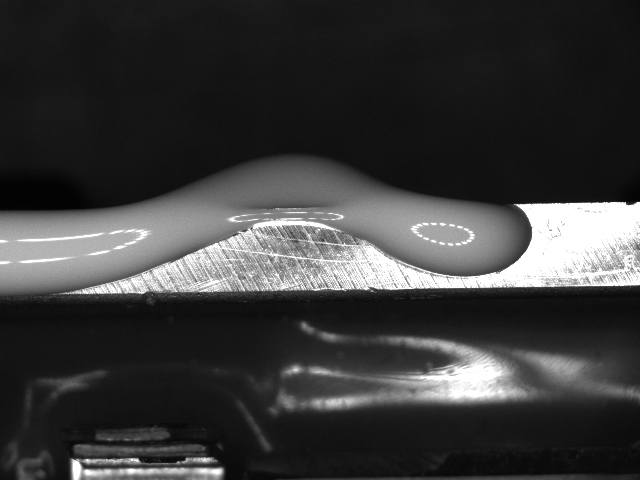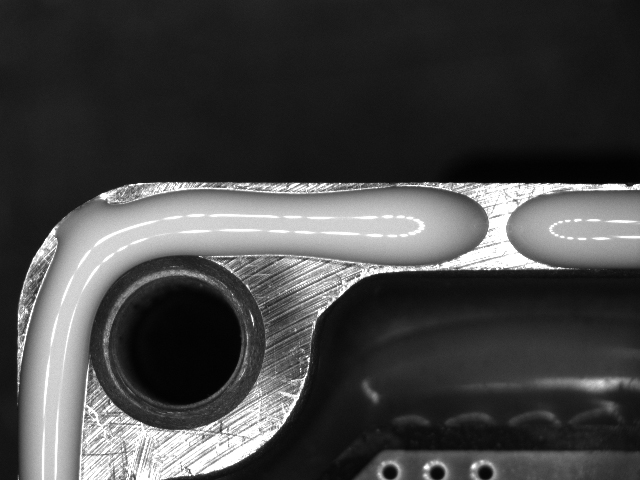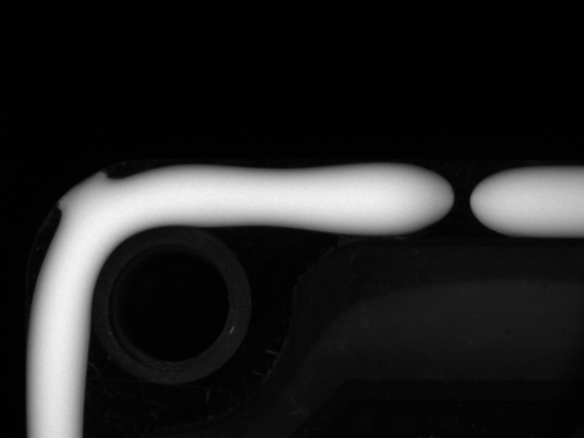 背景もすべて暗く撮像され、接着剤の形状が認識しやすい