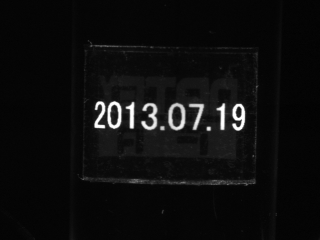 透明容器上の白色文字をスポット照明OPS-Sとカメラを使用して撮像します。