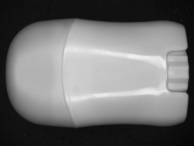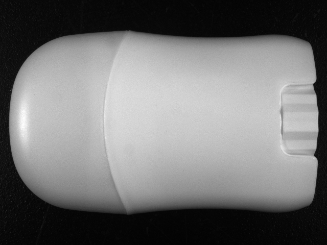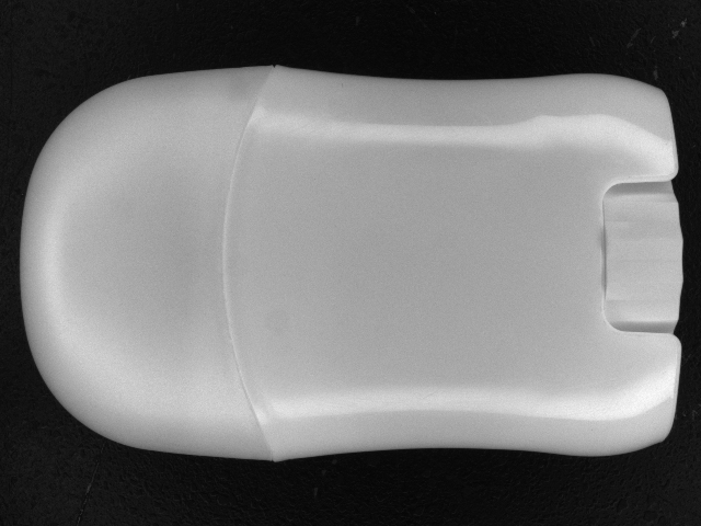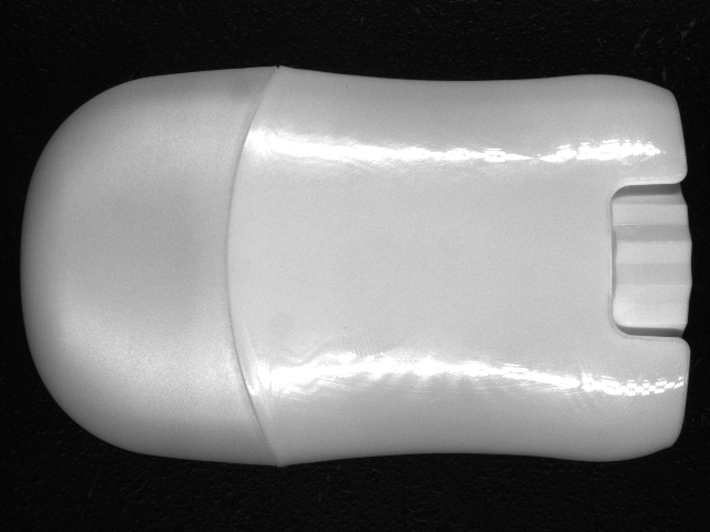 白色の樹脂容器の外観を検査しますが、バー照明などを使用すると照明が映り込んだり、明るさにムラが生じてしまいます。