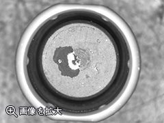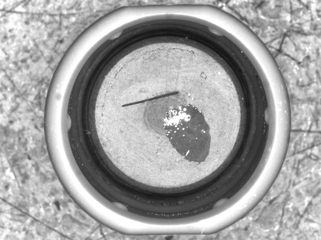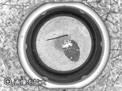 さらにサイズ違いのリング照明2台を重ねることでゴム栓表面を均一に照射し、異物で反射した散乱光は遮光されずカメラに届くので、異物のみ黒く撮像できます。