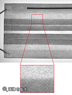 マスクの背面からバックライト照明OPFを照射し、折り目が曲がっていないかを検査します。