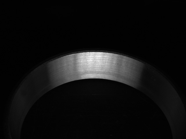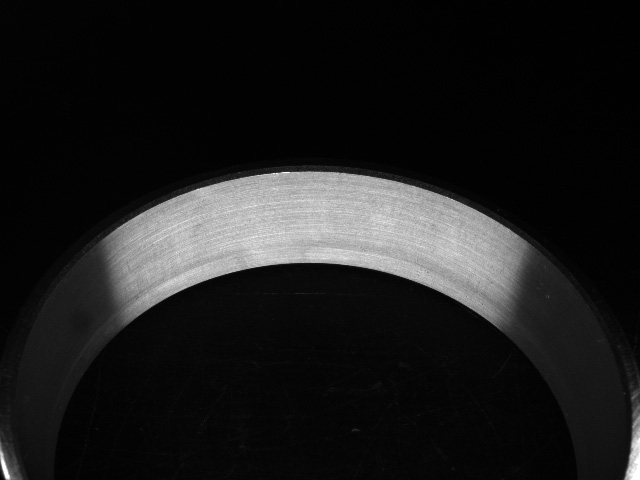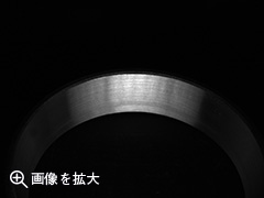 外周部および内周部に生じたキズや汚れ等を検査します。照明の発光面を映し込み、その正反射光をカメラで撮像することで、キズや汚れを黒く撮像します。