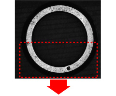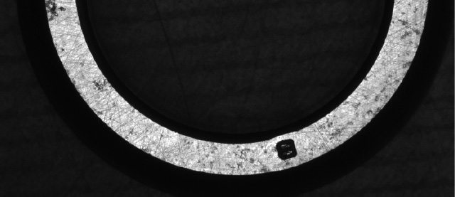 ドーム照明のOPDシリーズを使用すれば、ワーク表面を均一に照射できるため、品質上問題のない表面の微小な凹凸や研磨痕の影響を抑えて、品質上問題となるより深く大きい穴状の欠陥(巣)を黒く強調して撮像可能です。