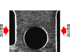 リードフレームに対して平行方向からバー照明を照射すると、ヘアラインが光ってしまい、誤判定をすることがあります。