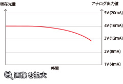 現在光量に応じて、電圧もしくは電流をアナログ値で出力します。