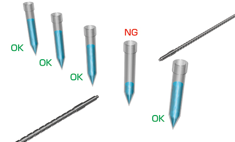 供給量過少を下側のファイバで、過多を上側のファイバで検出します。水検出専用のセンサですので、透明容器内の透明液の有無を確実に検出することが可能です。