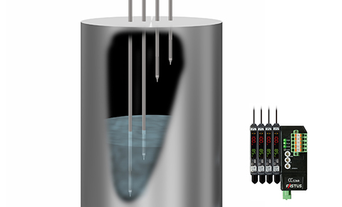 液面検出ファイバユニットNF-DF08を4台使用し、タンク内液体の上上限(HH)、上下限(HL)、下上限(LH)および下下限(LL)を検出しレベル制御を行います。