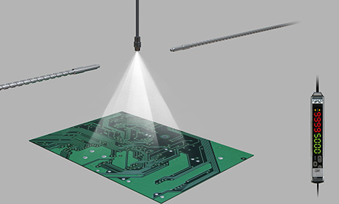 水検出ファイバセンサD3IF-TNで霧状のフラックスやコーティング剤が噴霧されているかどうかを検出します。