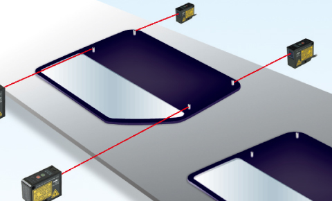 光電センサで穴を斜めから検出するのは難しいのですが、BGS-HDLシリーズなら常に最適なサンプリング周期で検出する「AUTOモード」により、斜めにしか取付けができない場合でも安定して検出できます。