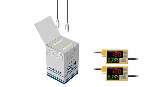アンプ分離型のCSなら、センサヘッドは世界最小クラスのφ14mmを実現。狭い個所でも複数台の取付けが可能ですので、2個所のホットメルトの有無を確実に検出することができます。