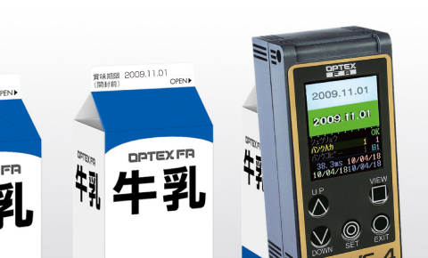 牛乳パックの賞味期限の印字チェックを行います。印字の濃さにバラツキがある場合は文字数判定機能を使用すれば、何文字印字されているかで判定することも可能です。