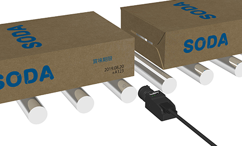 文字認識画像センサMVS-OCR2でカートンに印字された賞味期限と製造所固有記号が正しく印字されているかどうかを検査します。
