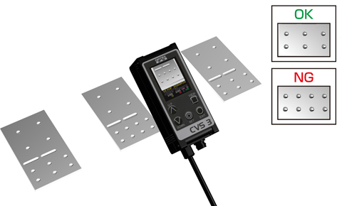 エッジ判別センサCVS3-RAで金属プレートの異品種混入をチェックします。