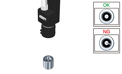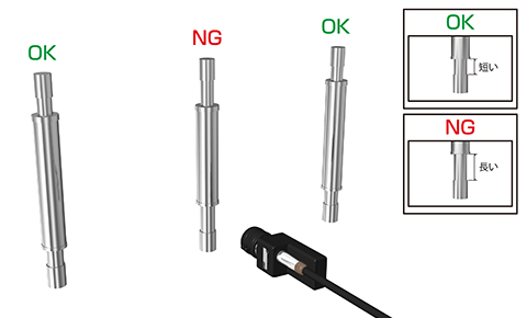 シャフト下部の長さを計測することにより品種を判別。誤った品種のシャフトを組み付けないよう、検査することが可能です。
