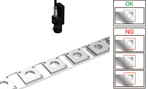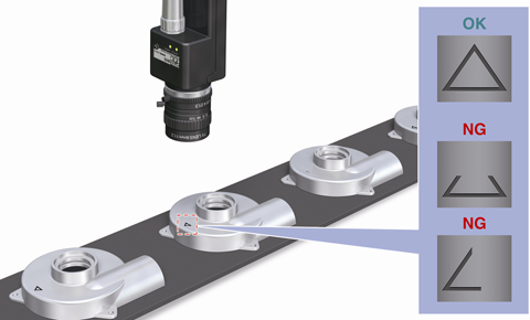 検査機能微分比較モードは、コントラストの低いワークでもその形状を認識することが可能。金属ワーク上の刻印でも、その形状を確実に検査することが可能です。