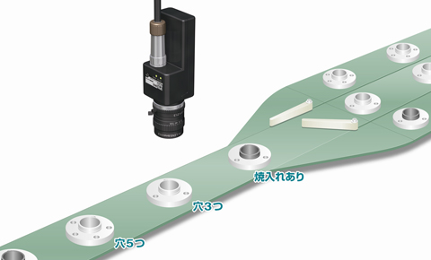 検査機能の輪郭判定モードは、形状を正確に検査することが可能ですので、照明によりワークをシルエット化することで、安定した異種混入検査や部品の仕分けを行うことが可能です。