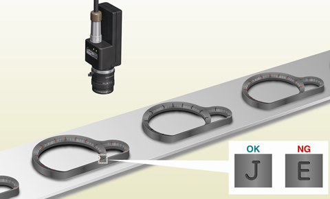 金属部品の刻印を画像センサMVS-PM-Rで検査します。