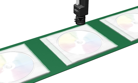 外部照明を映り込むように取り付け、フィルムのシワにより映りこんだ照明に乱れが生じることで判別します。絞りを絞れば、CDケース内のジャケットの色柄の影響なく検査可能です。