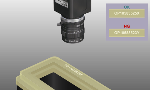 樹脂成形品に型式が正しく印字されているかどうかを、文字認識センサMVS-OCR-Rで検査をします。
