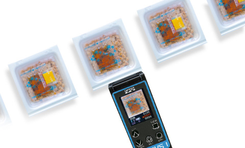 文字認識センサCVS4-Rでレトルトパウチに印字された賞味期限の印字をチェックします。