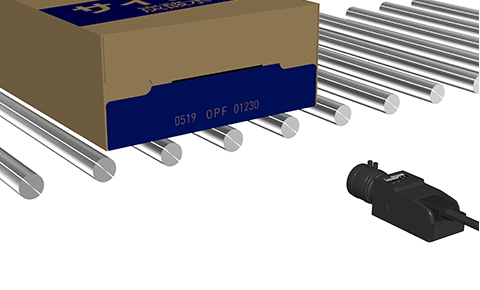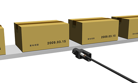 文字認識カメラMVS-OCR2で、カートンに極細文字で印字された日付を検査します。