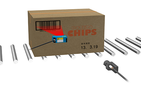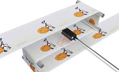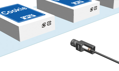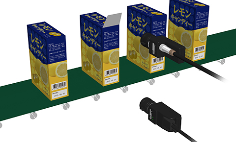 賞味期限を印字する前に、化粧箱が正しい向きで搬送されているかどうかを検査します。MVS-PM-Rで箱の絵柄やマークを検出することにより、正しい向きのものだけを搬送することが可能です。