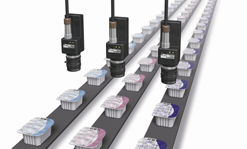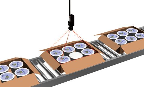 パターンマッチングカメラMVS-PM-Rで個装袋の配列を検査します。