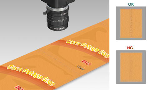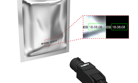 印字検査用画像センサGVS-OCRでピロー包装機での賞味期限の印字を検査をします。