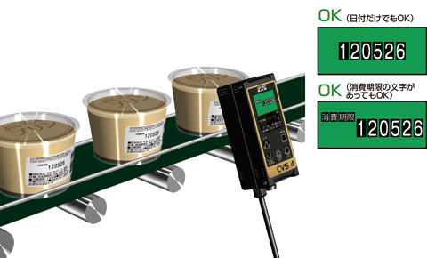 文字認識センサCVS4-Rで賞味期限の日付検査を行います。